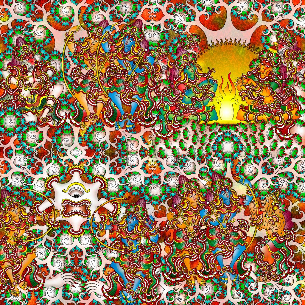 The AARC presents Ancestral Visions by Sandeep Chandran, on-view starting in early November 2025 in the AARC's Zen Garden Hallway. In Ancestral Visions, Chandran explores his family roots in Kerala, India through a combination of digital printed paintings and acrylic paintings made by hand. Chandran's work visualizes his intimate spiritual and diasporic experiences, creating historically rich and mythology-based worlds of healing, belonging, and homecoming. Taking inspiration and direction from culture bearers, art forms, and community rituals integral to Kerala, Chandran realizes his own internal world and visions of ancestry, culture bearing, and myth making in Austin, where he currently lives and works.