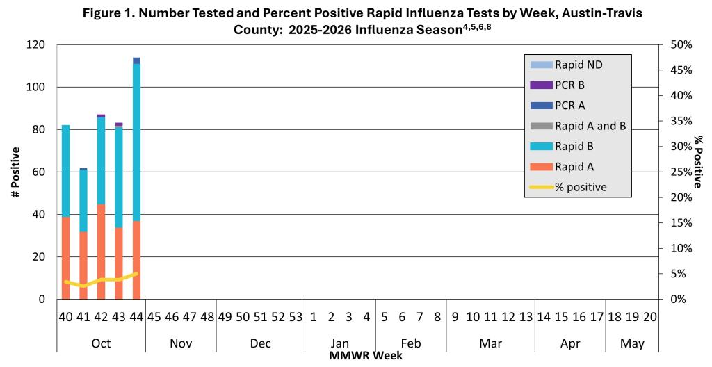 - There have been no adult influenza-associated deaths reported this season in Travis County.