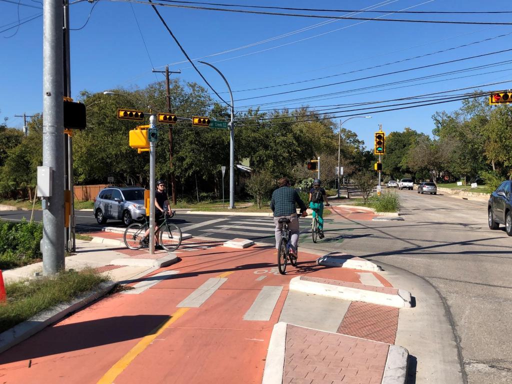 To implement elements of the Imagine Austin Comprehensive Plan, the 2023 Bicycle Plan's goals are to significantly increase bicycle use and improve safety for people riding bicycles throughout Austin. To achieve these goals, an All Ages and Abilities Network is being built out to provide additional transportation options for Austin residents and visitors. Austin City Council voted November 30, 2023, to adopt the Bicycle Plan along with the Urban Trails Plan, and Sidewalks, Crossings, and Shared Streets Plan.