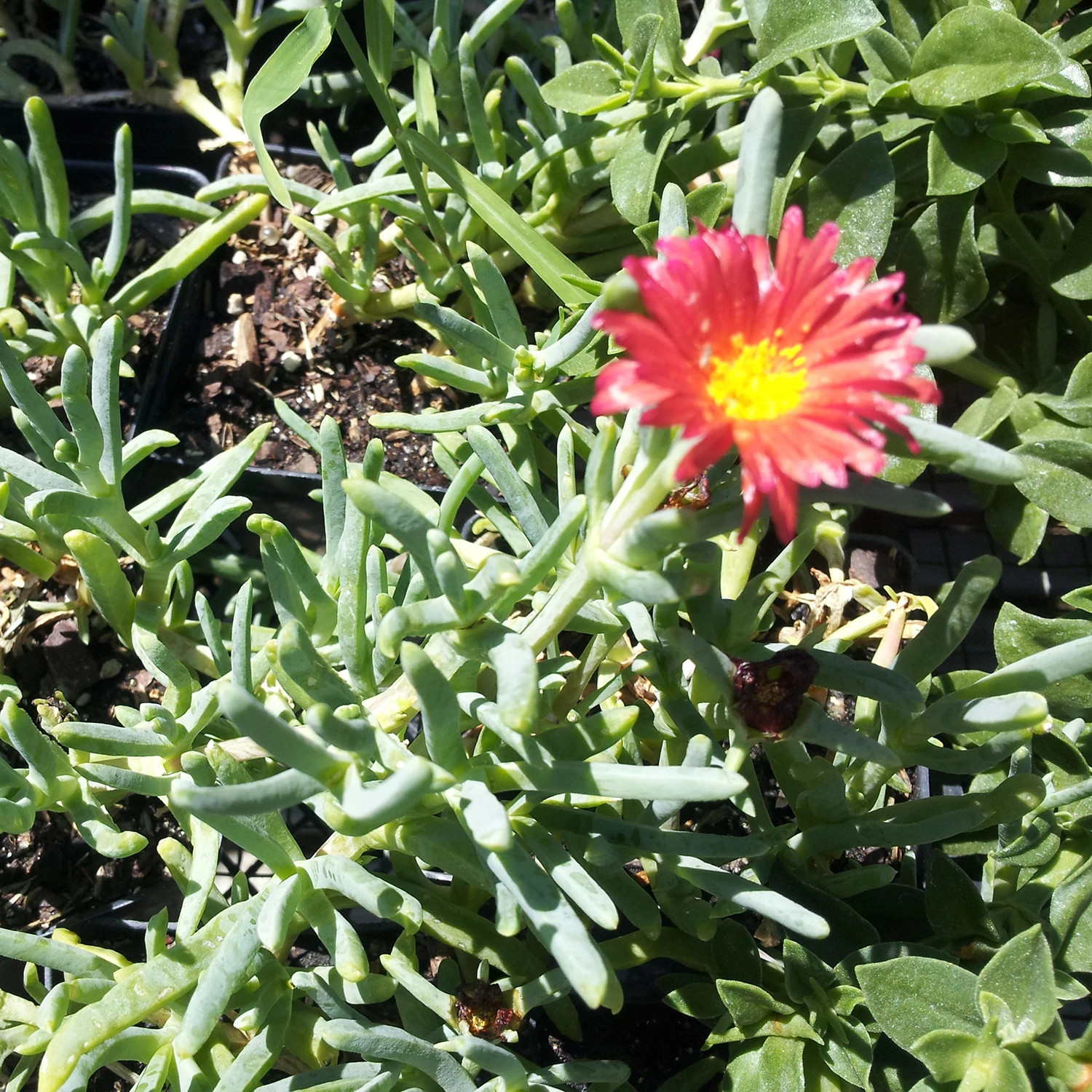 Iceplant is common name for 3 genera; fast-growing, groundcover for hot, dry sites; great for hanging baskets; has thick green succulent leaves; attracts bees and butterflies; no pruning necessary