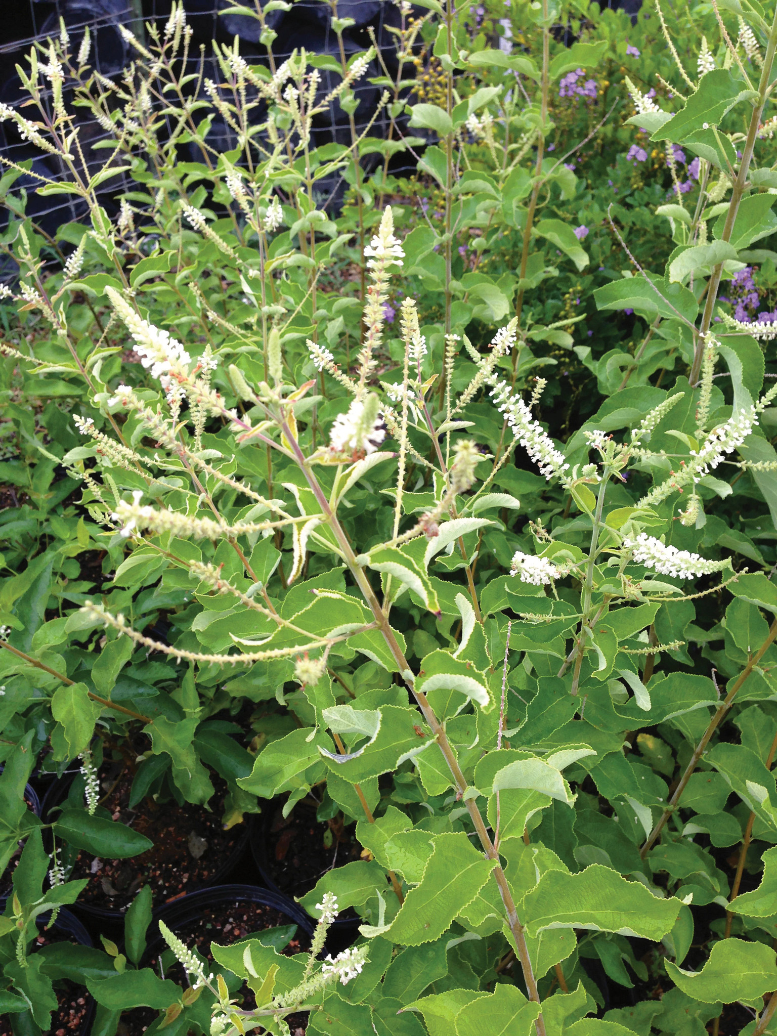 Multi-branched; upright habit; adaptable; fragrant flowers; blooms on and off all summer; attracts butterflies, bees, and hummingbirds; susceptible to freezing weather; prune to shape