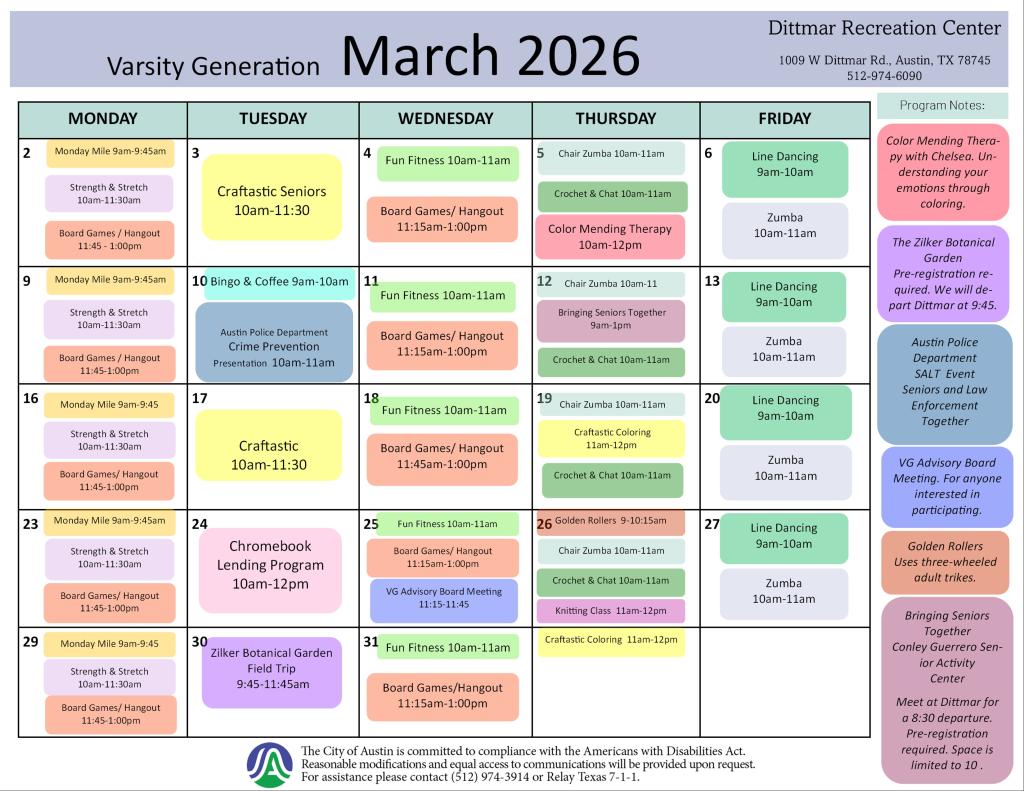 Dittmar Recreation center promotes individual and community wellness that enhances the quality of life by unleashing the human potential through services and programs that meet the emotional, social and physical needs of the far South Austin community.