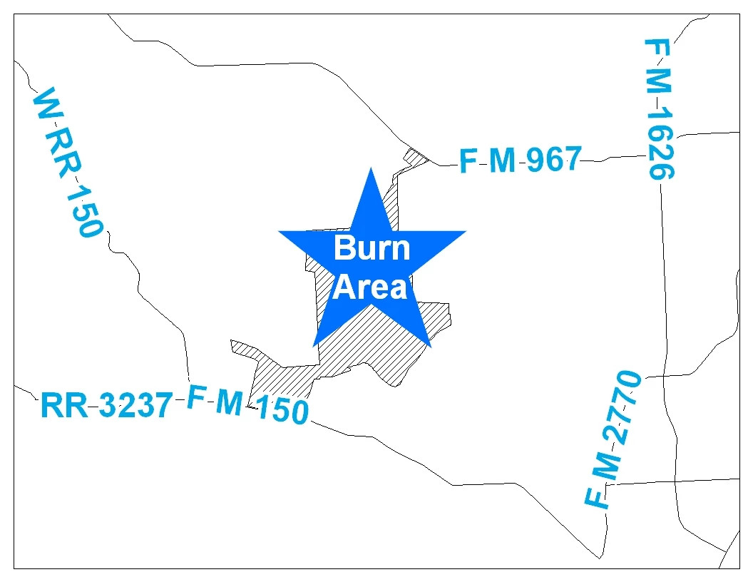 • Smoke may be visible northeast of RR 3237, north of FM 150, south of FM 967 and west of FM 1626 and FM 2770 from 10 a.m. to sunset.